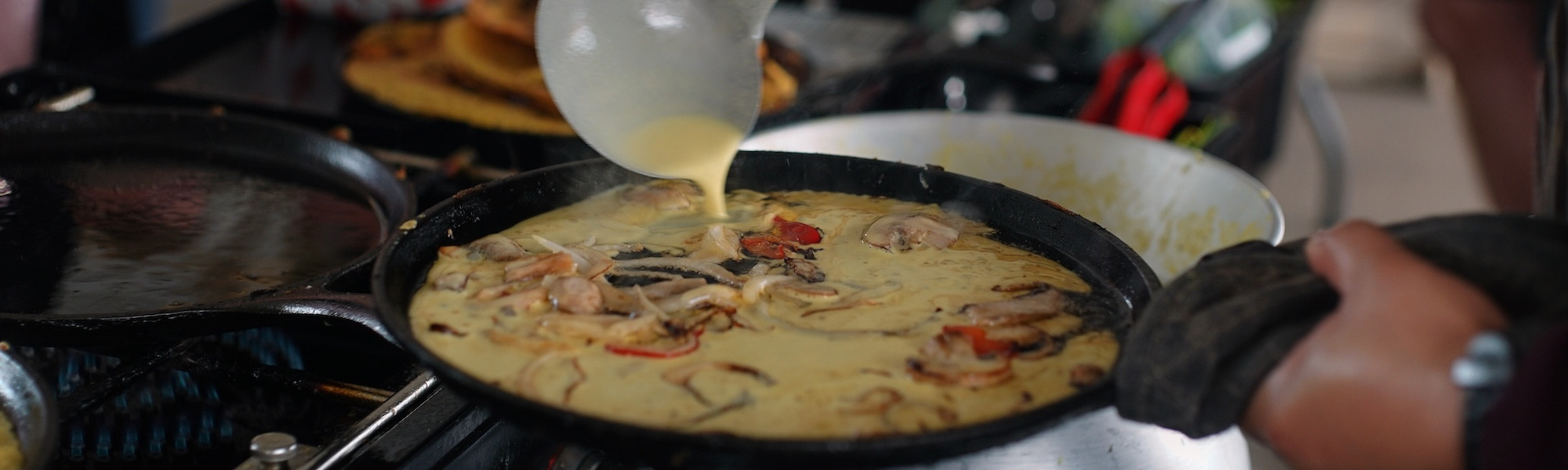 Banh Sizzle specializes in a delicious Vietnamese dish called Banh Xeo which translates simply to "Sizzling Crepe" and is where we derived our name.